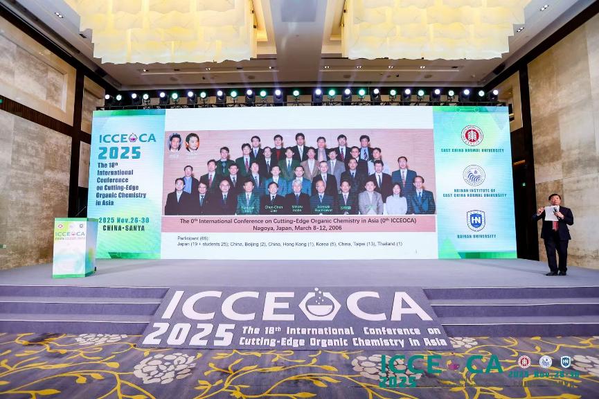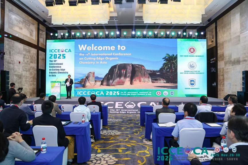 2025年11月27日,第十八届亚洲有机化学国际大会在海南三亚崖州湾隆重开幕。来自中国(包括中国大陆、台湾地区、香港地区)、日本、韩国、泰国、新加坡7个国家地区近200位专家和学者齐聚一堂,共襄盛会。上海中医药大学林国强院士担任本次大会荣誉主席,中国科学院上海有机化学研究所洪然研究员和华东师范大学姜雪峰教授担任大会共同主席,周怡琳为大会秘书长。本次会议由华东师范大学主办,华东师范大学海南研究院与海南大学联合承办。